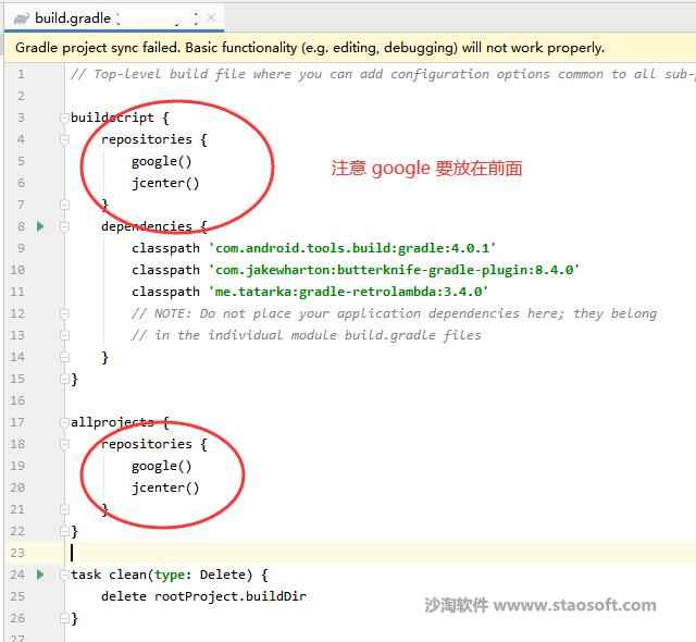 Android Studio在编译时出现 Could not find com.android.tools.build:gradle:4.0.1,怎么解决? 2020/09/23 08:46 问题解答 人气:1126 问题 Android Studio在编译时出现 Could not find com.android.tools.build:gradle:4.0.1,怎么解决? 解答 上面英文已经说明了方法,添加google仓库试试,如下图: